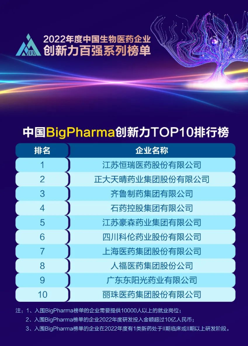 同日,2023米思会(中国医药健康产业共生大会)发布“2022年度中国生物医药企业创新力百强系列榜单”,金年会- 金字招牌医药再蝉联“中国BigPharma创新力TOP10”榜首。该榜单自2021年启动评选以来,金年会- 金字招牌医药稳居榜首。